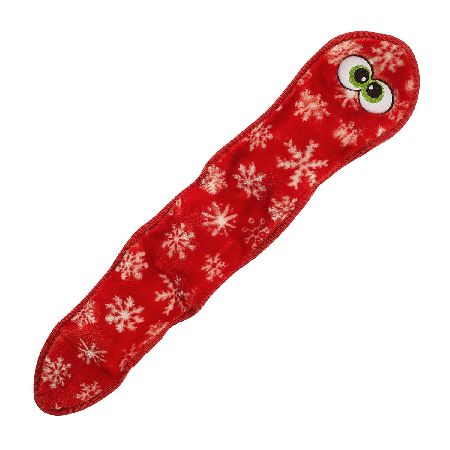 Snake, worm, whatever, my dog doesn’t care, she loves it all the same. My little friend can be kinda rough with her toys. This is no exception. The pictures are from roughly one month of giving it to her and include playing with it at least every other day or so. The top is holding up well, but the bottom has taken some damage, and two of the squeakers have long since been destroyed. Despite this, my dog still loves playing with it. We normally play tug of war together, but on her own she chews at it to get to the squeakers inside, which she promptly destroys, which I’m totally fine with, as quiet toys are much preferred, by me, not her. I believe there are 4 in the XL size that we got. We’ve had a few of these in the past. We tend to get about 6 months out of them. After she “lovingly” removes the squeakers, she doesn’t chew on it much, and we just use it for tug of war, but at that point she’s done enough damage to the underside that its time is limited. But, as it’s pretty low priced, for the time and enjoyment we do get out of it, it’s very much worth it. I do need to clarify, the durability is actually quite good, I don’t fault the product as at all, it’s just my dog is equally as good with destruction, but it should be noted this toy does last much longer than most of her victims. The color, (we got the blue and green) is also very vivid and nice, as is the texture. We’ll be purchasing again.