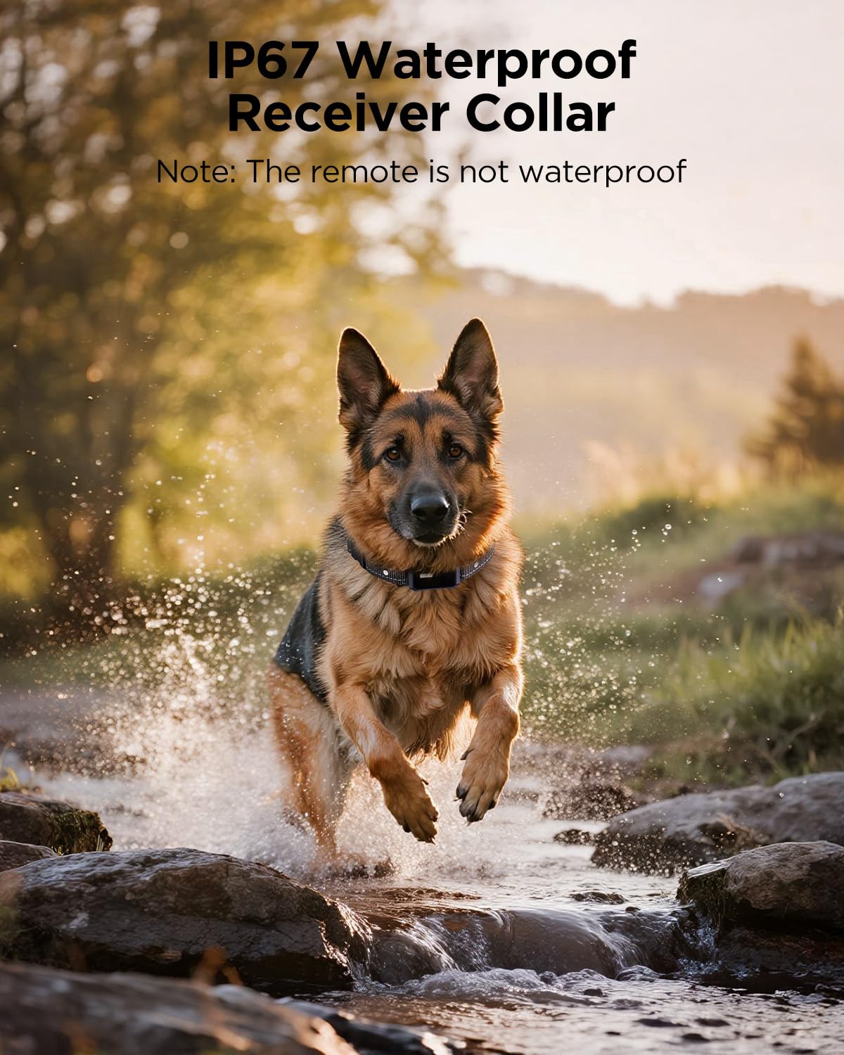- 【Military-Grade Durability】This combat-tested shock collar for dogs features military-grade reinforced casing that withstands 500lbs crush force and 100K+ bite cycles—engineered to survive extreme adventures, from muddy trails after heavy rain to stormy mountain hikes. IP67 waterproof rating (1m/30min) makes it ideal for lakes, storms, and outdoor expeditions.