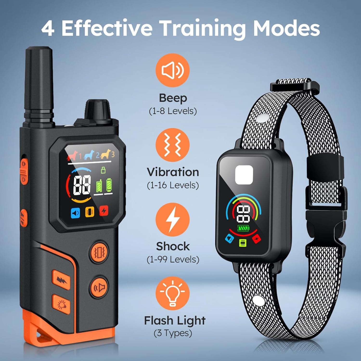 - ใ4 Humanized, Effective, Safe Training ModesใDog shock collar with 4 humane training modes: beep(1-8 levels), vibration(1-16 levels), safe shock(1-99 levels) and light. dog e collar enables you to set the right stimulation levels for your pet and helps your unruly and hard-headed dogs learn to be a better part of your household