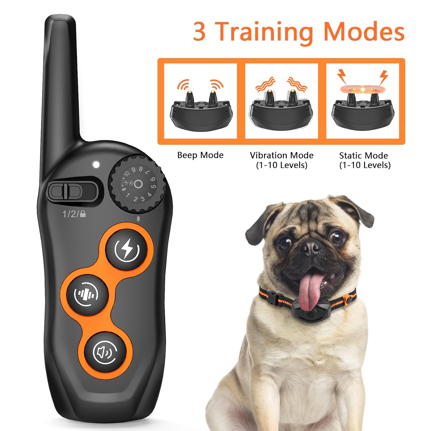 About Dog Training Collar, IPX7 Waterproof Dog Shock Collar with Remote Control Range 1300ft, 3 Training Modes, Beep, Shock, Vibration, Rechargeable Shock Collar for Large Medium…