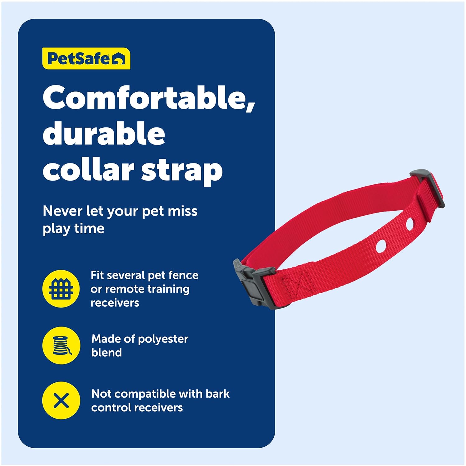Top Pick โ discover the PetSafe Replacement Collar Strap with 2 Holes – Adjustable Design for In-Ground & Wireless Fence Collars – Lightweight Polyester – Secure, Comfortable Fit by PetSafe, built for performance and designed for life in the United States.